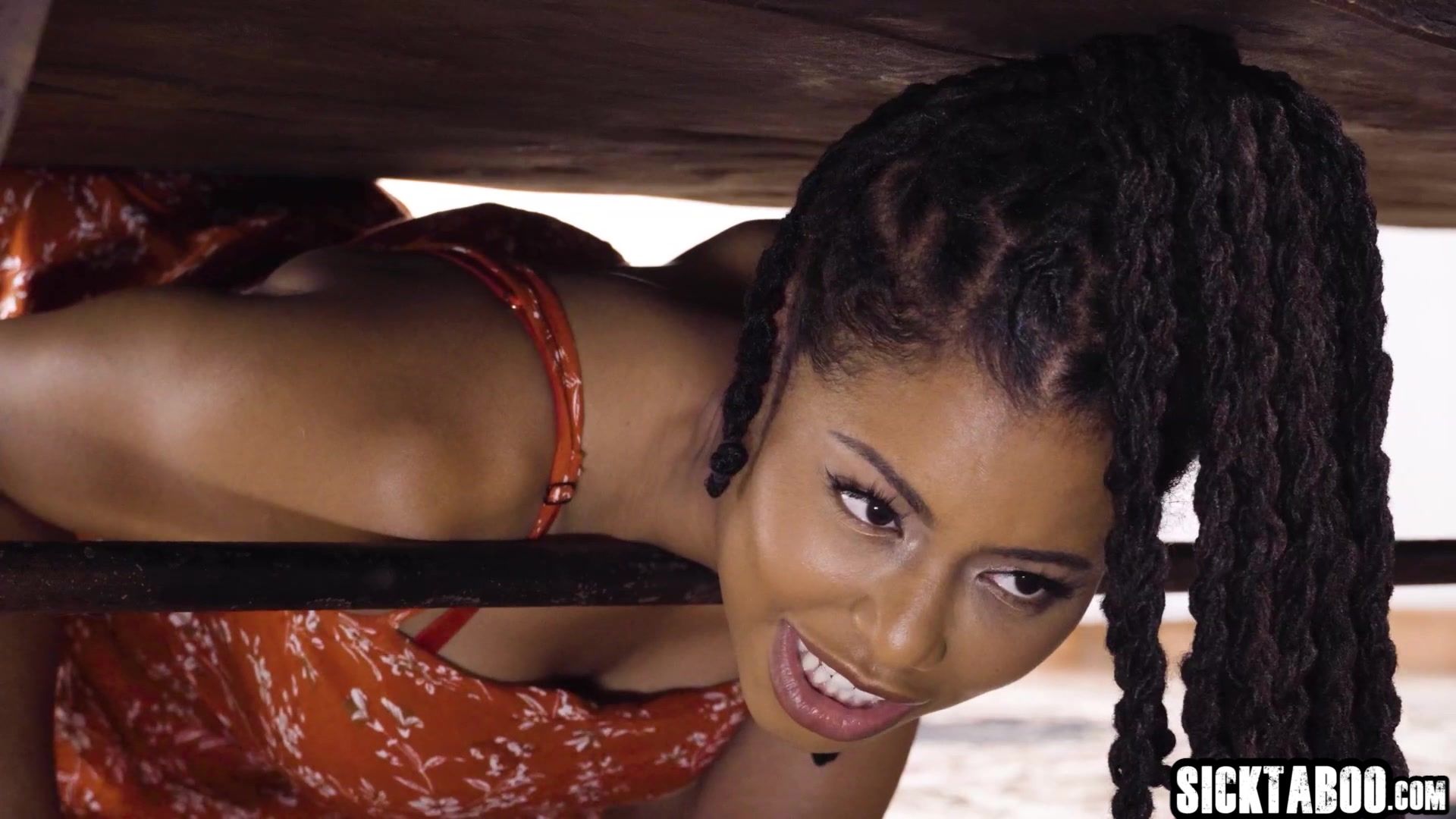 Big tits black MILF Kira Noir sucked boyfriends big hard cock after she fucked stuck under the table Sexy big ass MILF got stuck and fucked After rough sex ebony MILF gave a blowjob After cock sucking MILF enjoyed hardcore fucking